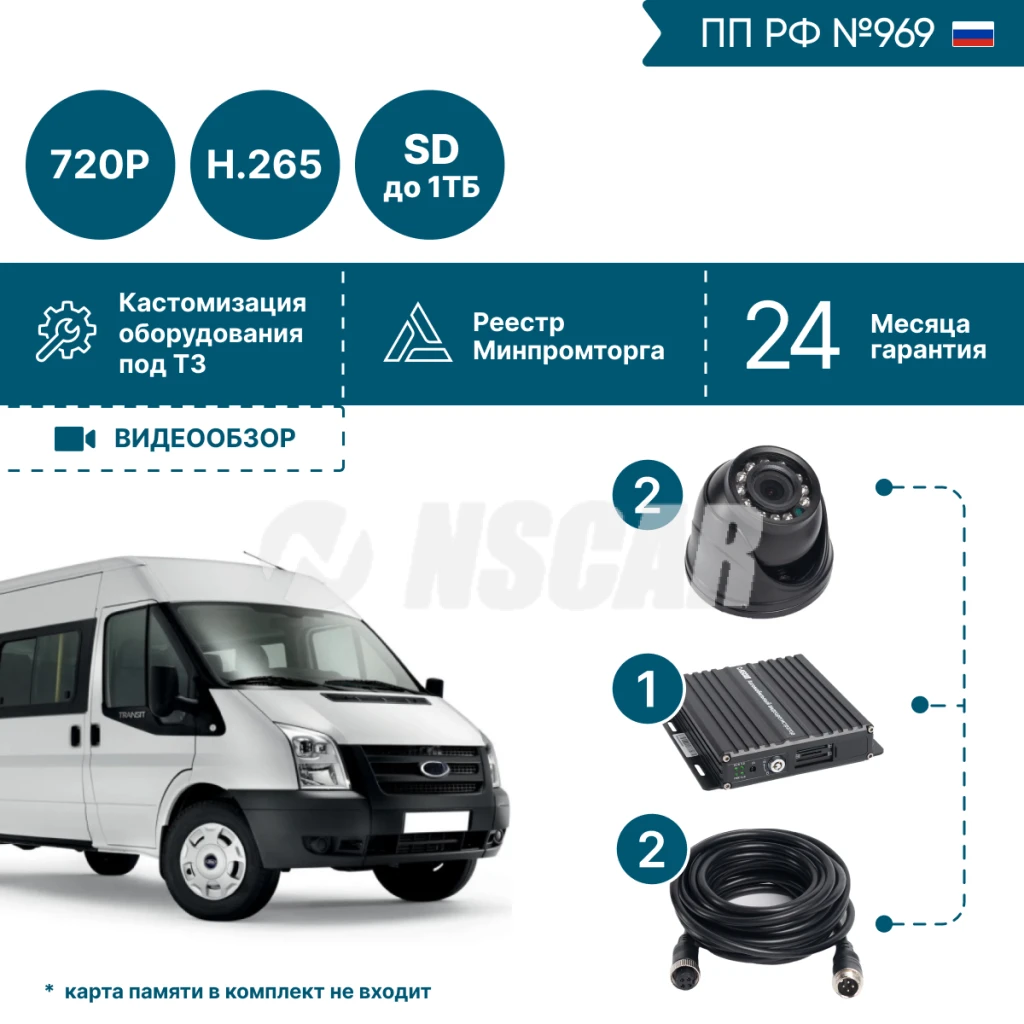 Комплект видеонаблюдения на 2 камеры для опасных грузов NSCAR BN201 FullHD_HDD